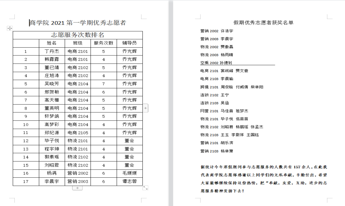 志愿部秉持着“奉献、友爱、互助、进步”的精神,对上学期优秀志愿者与假期疫情志愿者进行了评比,并对优秀志愿者进行了公示。