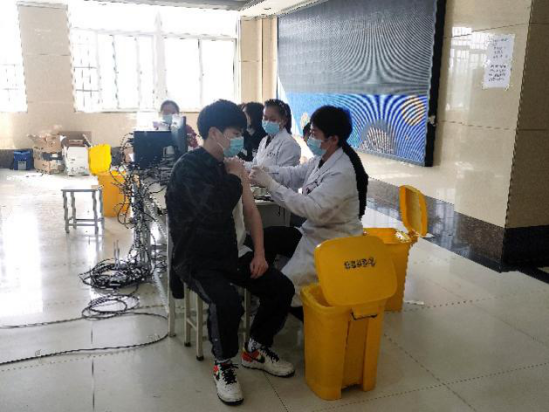 学校领导到现场查看疫苗接种进度,并对接种疫苗的同学们送去了鼓励