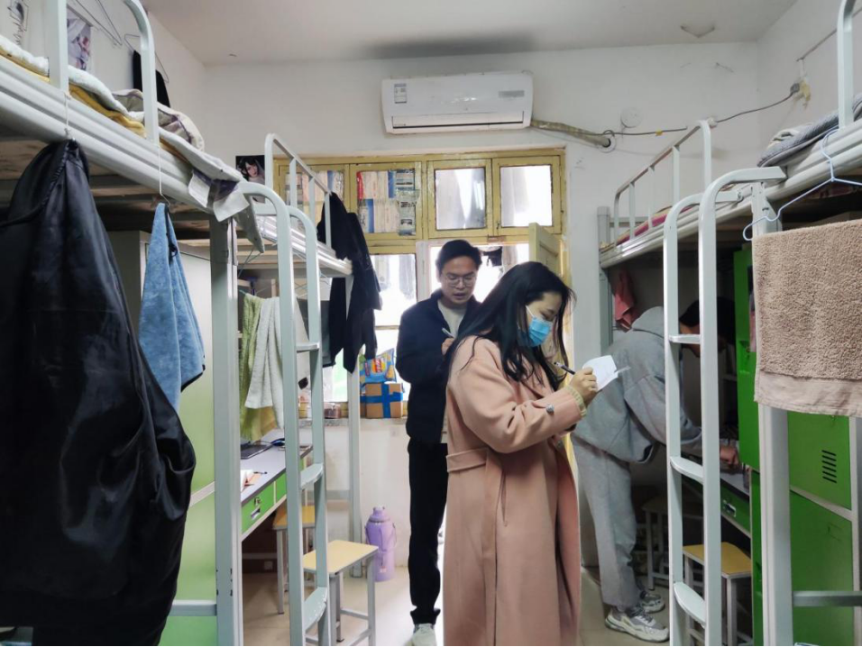 3月18日,为督促学生及时整理宿舍,营造干净整洁的生活环境,宣传部干事同张天娇老师、乔光辉老师共同检查宿舍,并进行全程拍摄与记录。