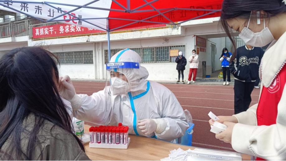 疫情再次来袭,为做好全员防控工作,建好防疫屏障,学校组织全员核酸检测,办公室组织各班有序排队参与核酸检测。