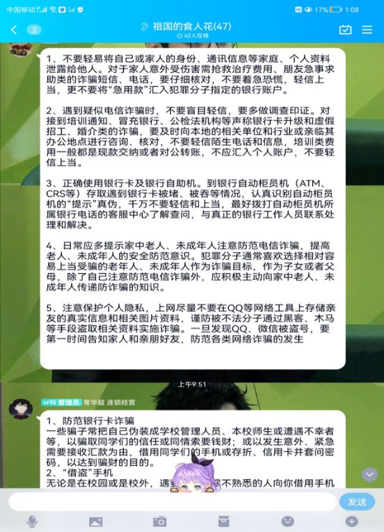 近年来,由于网络电信诈骗案件作案手段不断翻新、欺骗性强,一些安全防范意识薄弱的在校大学生更是容易受到不法侵害,为突出全民反诈宣传月的主题,国产又猛又黄又爽的视频组织全体学生通过观看宣传视频、讨论等方式,普及网络诈骗防范知识,尤其是针对在校大学生非法买卖、出租“两卡”和网络账号、支付账号等行为进行警示宣传教育。