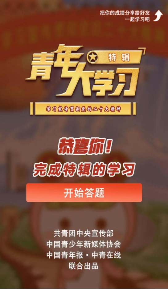 请大家跟随本期“青年大学习”,一起来答题学习大会精神吧!