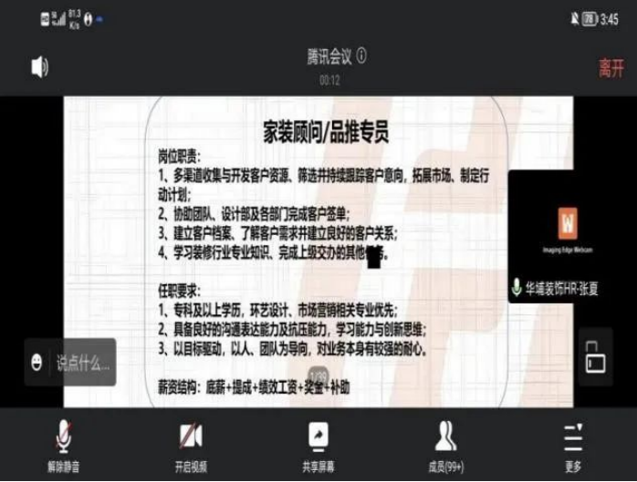 通过康辉南通材料科技有限公司、华埔建筑装饰工程有限公司、洛阳万香园食品有限公司等直播企业的宣讲介绍,同学们表示对当前的就业形势及就业环境有了更加深入的了解,要根据企业需求,结合自身情况做出就业规划。同时随着时代的进步和科技的发展,市场上出现了许多新兴职业,这些职业存在着新的要求和不同以往的发展方式,所以要从当前为就业做好充分准备,树立就业目标。