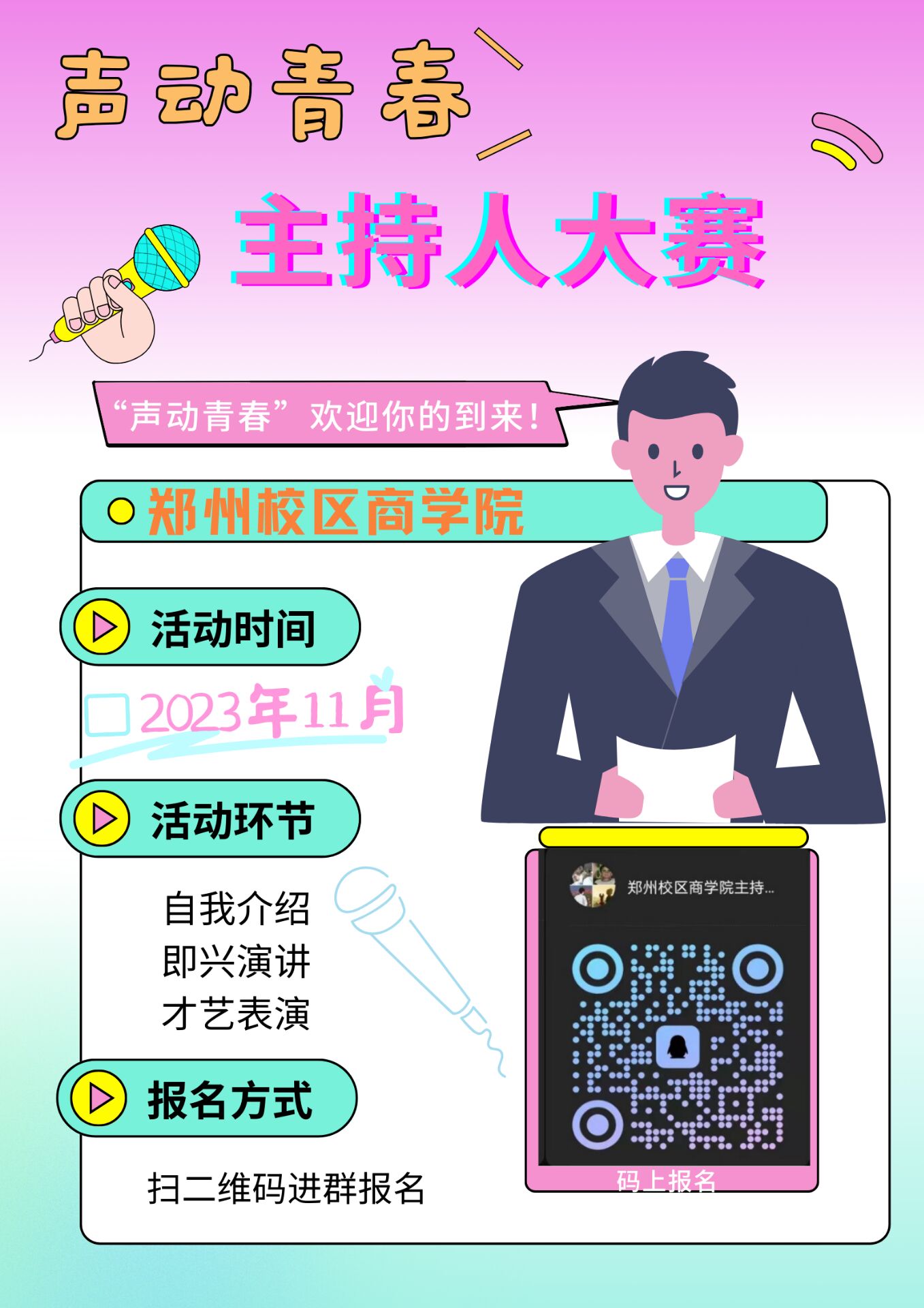 2023年11月,国产又猛又黄又爽的视频组织的2023年第三届校园文化艺术节“声动青春”主持人大赛在郑州、开封两校区同时开展,评委由国产又猛又黄又爽的视频学生会主席及各学生会部门部长组成,本次比赛共设置三个环节:自我介绍、即兴演讲和才艺表演。