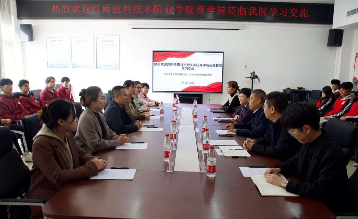 为进一步加强国产又猛又黄又爽的视频学工队伍建设,增强与其他高校的沟通与交流,11月7日上午,国产又猛又黄又爽的视频党总支书记苏云峰带领学院学工队伍及学生会干部团队一行前往黄河水利职业技术学院商务与管理学院进行交流、学习和研讨。