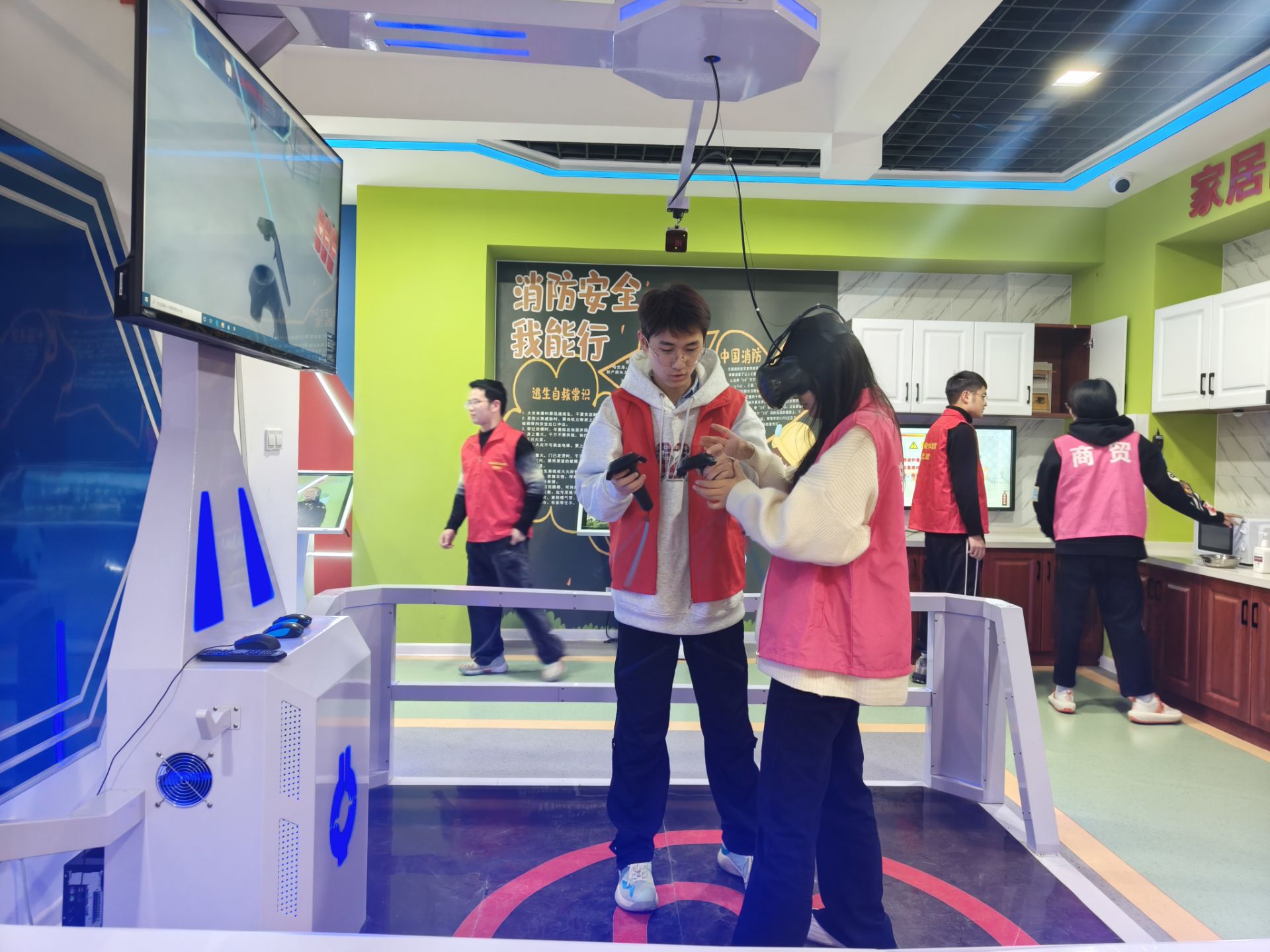 为增强学院师生安全意识,提升公众安全素质。11月8日,学院组织学生在化工学院的HSE安全体验馆接受科普教育,化工学院组织相关老师进行了详细的讲解和接待工作。学生们在老师的指导下进行了电气安全使用、火灾逃生、智能家居安全、VR自然灾害逃生、VR消防逃生以及结绳训练、缓降训练、心肺复苏等项目体验。活动期间,学生们体验到各种灾害的危险性,从日常家用电器引发安全事故、到火灾烟雾逃生,同学们按照老师的指导有条不紊的通过烟雾逃生通道,再到学习掌握各种火灾现场使用灭火器的方法,并且能够很快成功灭火等等,这些充满新意的沉浸式体验活动既让学生学习了安全知识,也使活动充满趣味性。