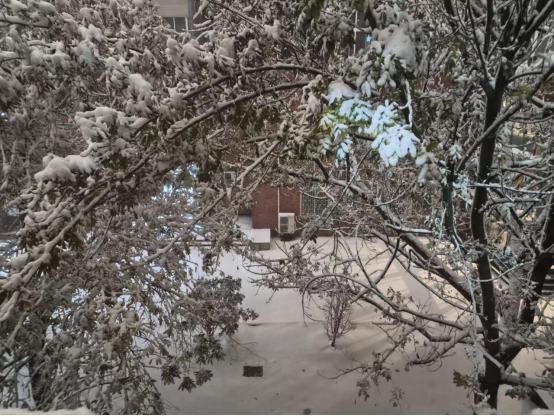 雪花轻轻地覆盖在娇艳的花朵上,红与白形成最惊艳的配色,直逼路人眼球,引得不少同学驻足。