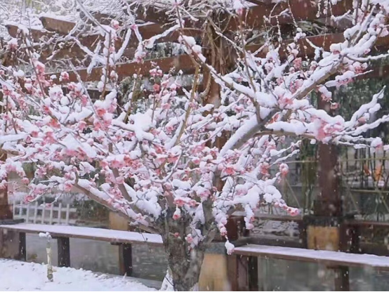 “遥知不是雪,为有暗香来。”大雪纷飞、银装素裹,梅花在凛冽的寒风中独自绽放,给冬日增添了一抹独特的色彩。