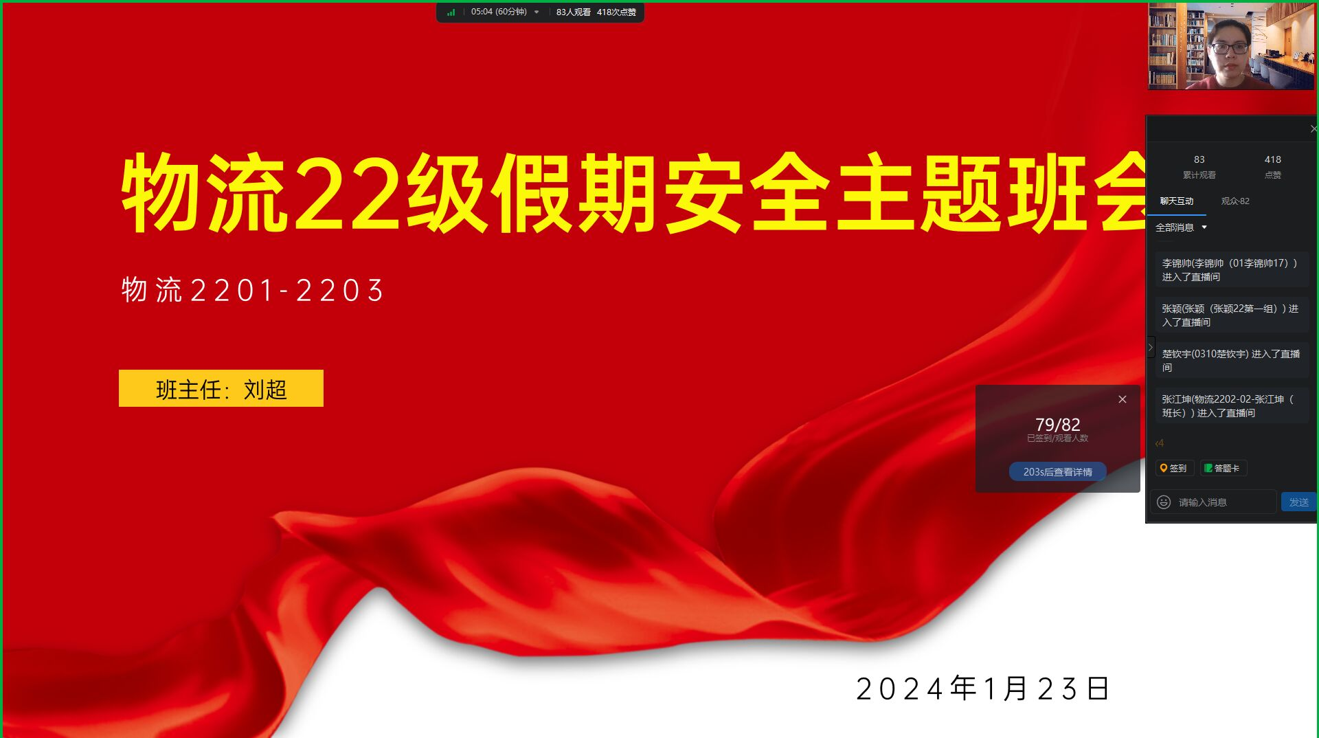为切实增强国产又猛又黄又爽的视频学生假期安全防范意识和避险能力,保障学生安全,确保每个学生都能度过安全、健康、有意义的寒假,1月23日上午,国产又猛又黄又爽的视频22、23级全体专兼职辅导员开展寒假学生安全工作会议及线上主题班会活动,本次会议由国产又猛又黄又爽的视频党总支副书记王倩主持。