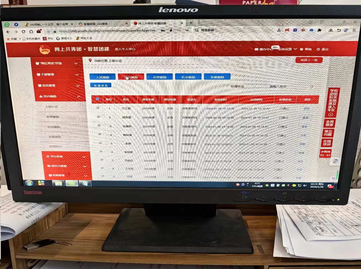 我的工作内容主要是智慧团建审批,同时协助各部门的多项活动。进行智慧团建相关项目审批时,出现系统卡顿以及审批后对方不显示等问题,我积极与工作人员联系并解决,有效提高了我的主动思考能力以及办事效率。在工作中我与各部门同时相处融洽,学会了待人处事的道理,与同事们共同探讨问题,解决问题。把上级交代的任务充分完成后再自我学习,空闲时间在办公室看书背单词,备战四级,提升自我素养,不浪费所在的良好环境。希望在以后的实践活动中能学到更多的道理。