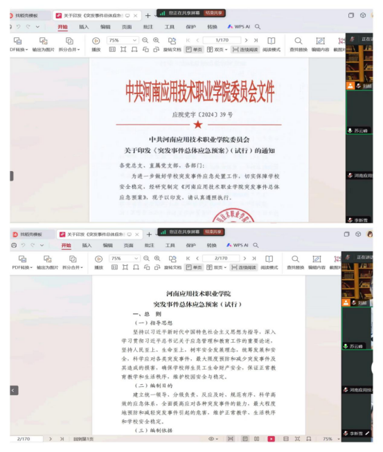 为积极响应学校关于加强校园安全管理、提升应急响应能力的号召,确保学院师生深刻领会《应急预案》的精髓。7月13日,国产又猛又黄又爽的视频组织召开《河南应用技术职业学院突发事件总体应急预案》线上专题学习会议,本次会议由国产又猛又黄又爽的视频党总支书记苏云峰主持,院长孙勇及全体教师参加。
