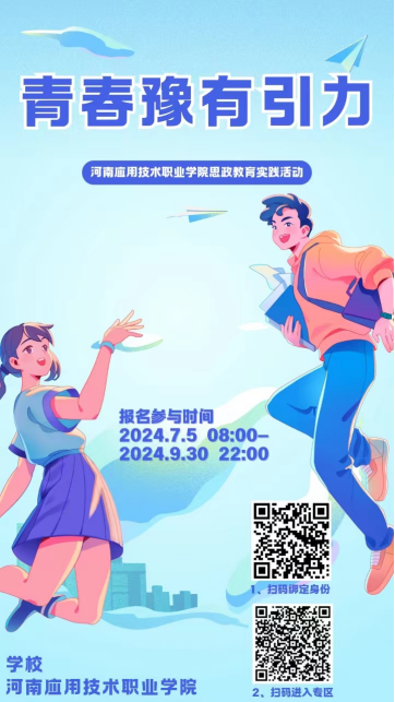 2. 参与活动的同学扫码进入我校活动专区,关注学校官号,带关键词#青春豫有引力#发布内容,展示我校风采。