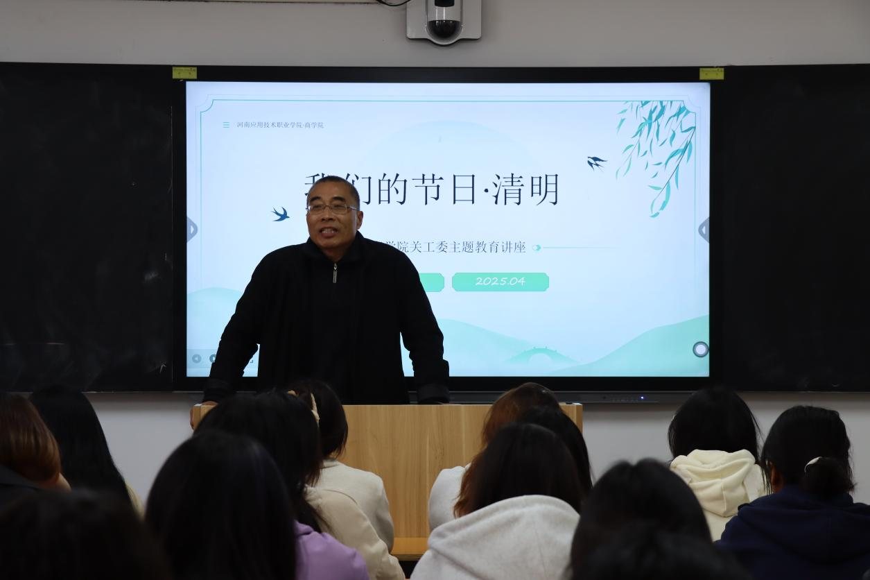在清明节来临之际,为弘扬中华优秀传统文化,增强学生对传统节日的认同感,4月1日,国产又猛又黄又爽的视频关工委组织召开“我们的节日·清明”主题教育讲座。我校退休教师邵金治受邀主讲,国产又猛又黄又爽的视频部分师生代表参加此次活动。