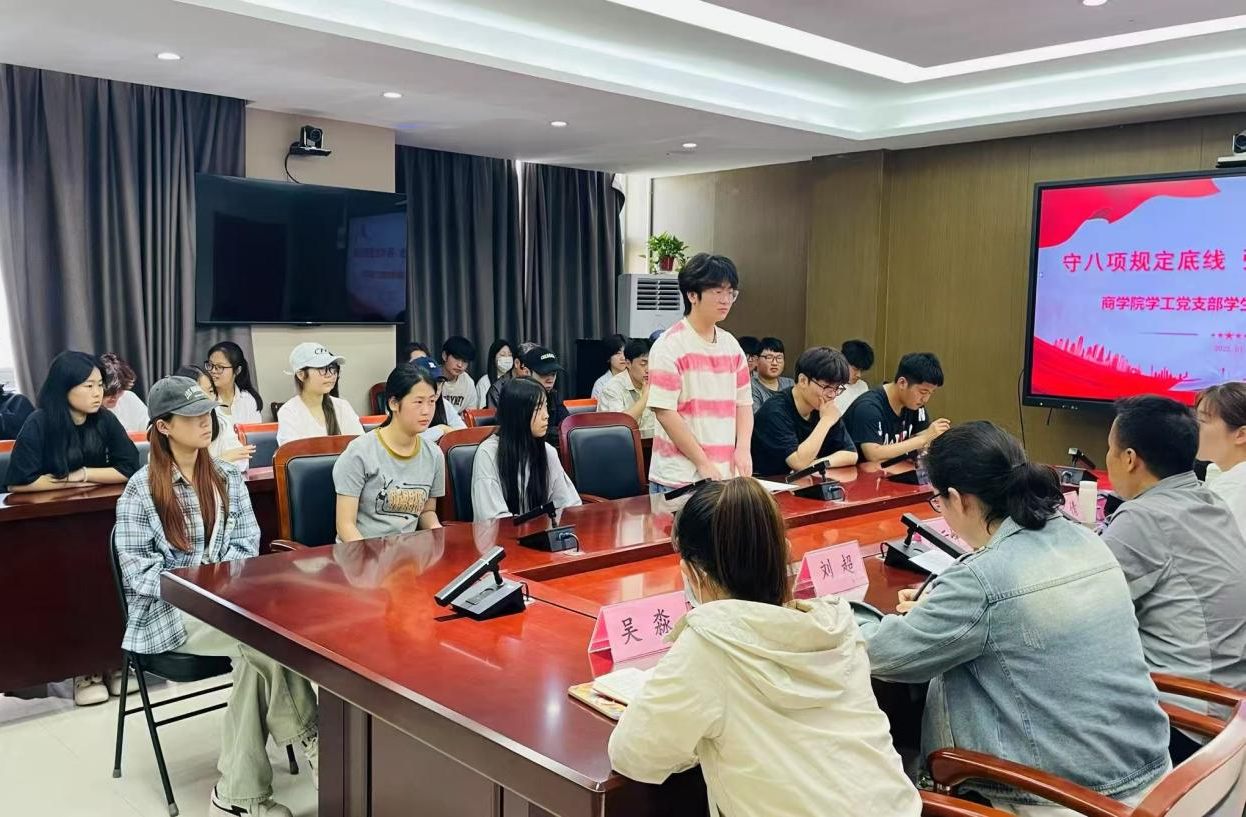 为深入贯彻落实中央八项规定精神,进一步提升学生管理工作水平,4月21日,国产又猛又黄又爽的视频学工党支部组织召开了以“守八项规定底线强学生管理担当”为主题的学生管理工作座谈会,学院党总支书记苏云峰、学工办主任刘超、辅导员代表及学生代表参加,会议由学院党总支副书记王倩主持。
