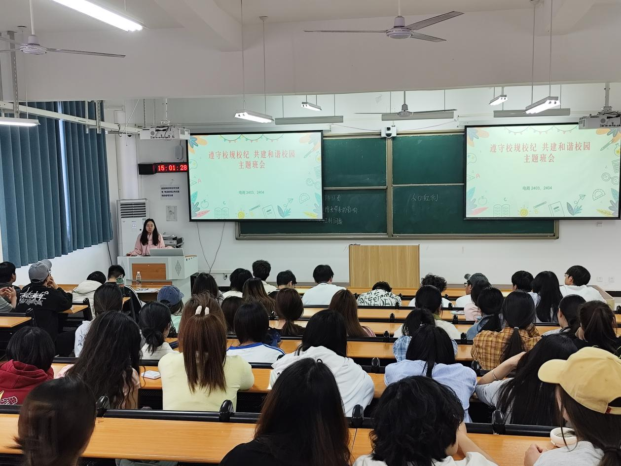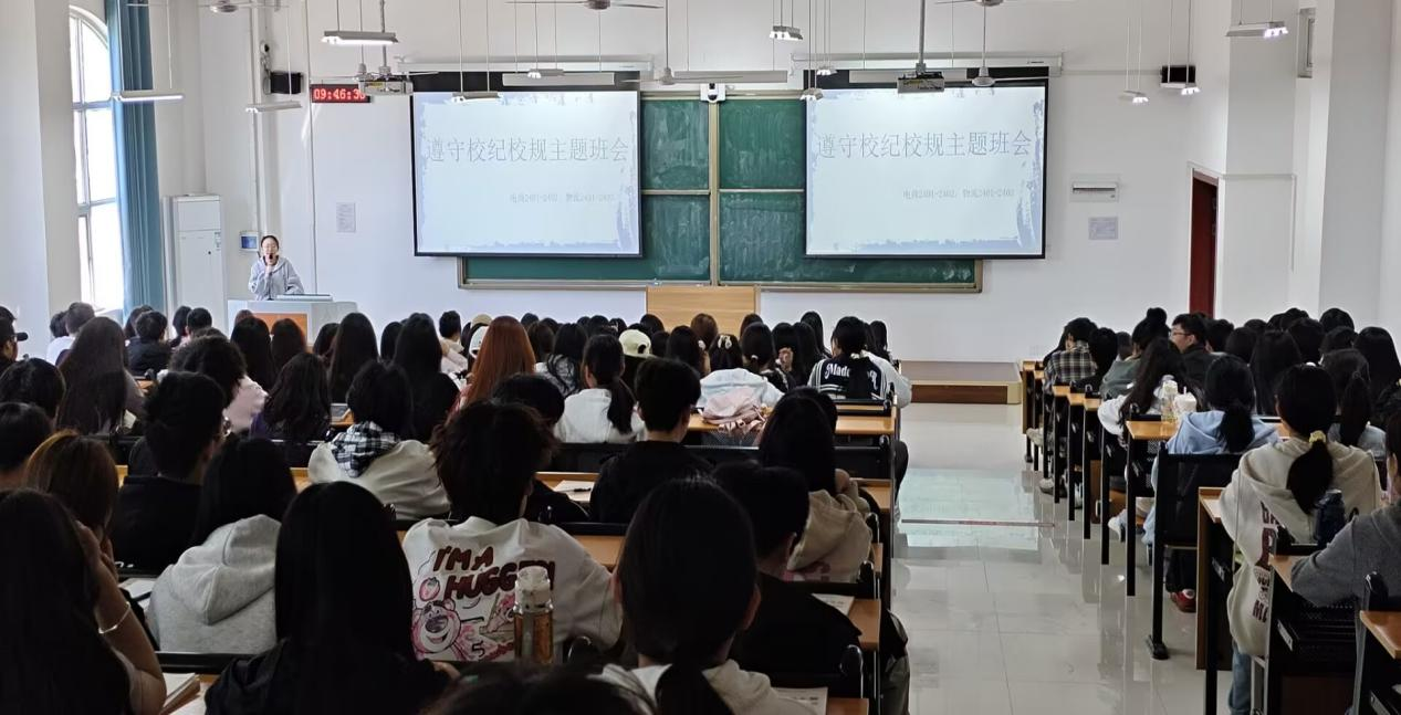 班会伊始,辅导员们运用精心准备的PPT,结合真实的校园案例,详细讲解了学校的各项规章制度,包括课堂纪律、考试规则、宿舍管理规范等内容,让同学们清晰地了解违反校规校纪带来的严重后果。随后,各班通过播放相关教育视频等形式,引导同学们反思日常行为中存在的问题。在交流环节,同学们积极分享自己身边发生的正反事例,共同探讨如何在日常生活和学习中更好地遵守校规校纪,并提出了许多富有建设性的意见和建议,如设立班级文明监督岗、开展纪律知识竞赛等。