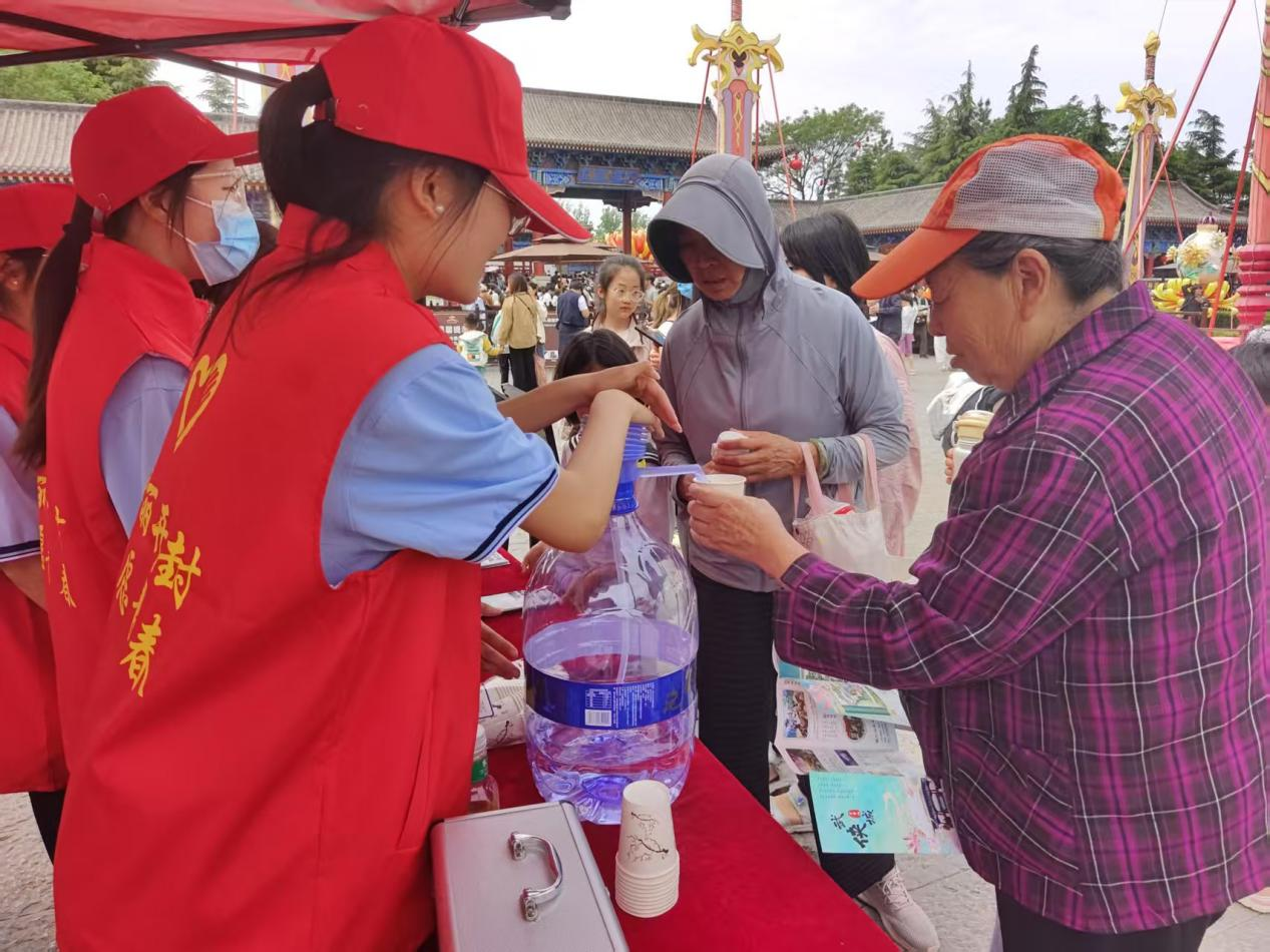 面对游客的各种需求,志愿者们始终保持着热情的态度和灿烂的笑容。当遇到外地游客对景区周边交通不熟悉时,志愿者们不仅详细告知公交、打车等出行方式,还贴心地在手机地图上标注路线;当遇到口渴的游客时,志愿者们也会积极主动地帮忙。志愿者们专业、细致的服务,赢得了游客们的一致好评。
