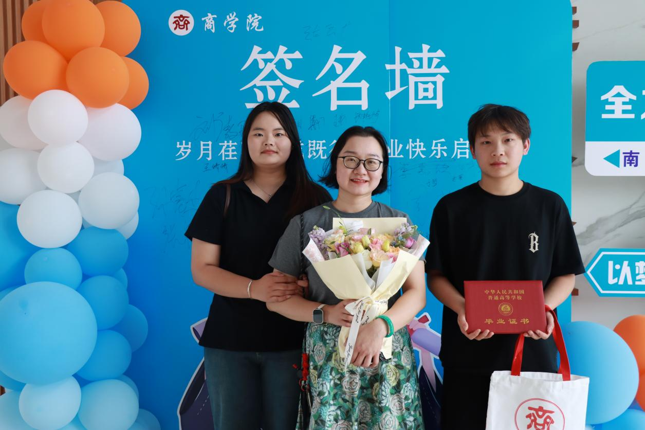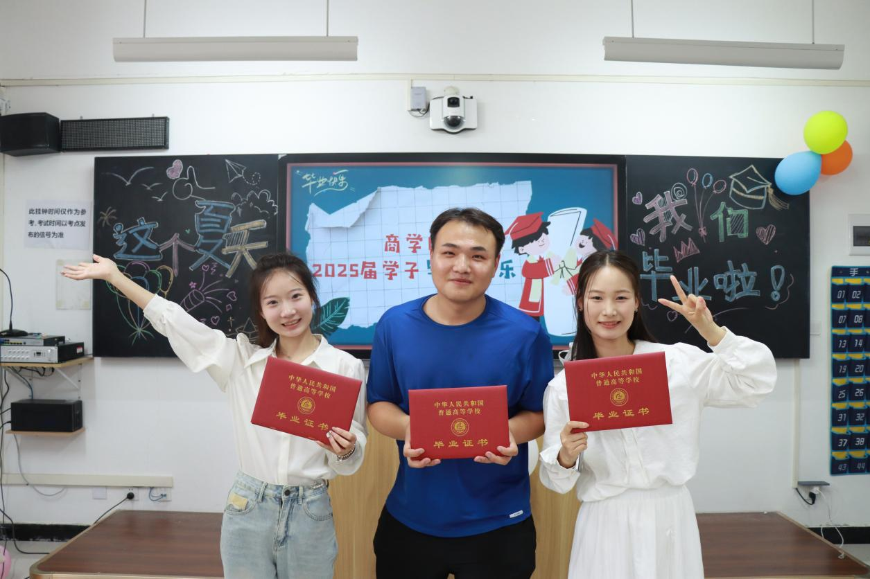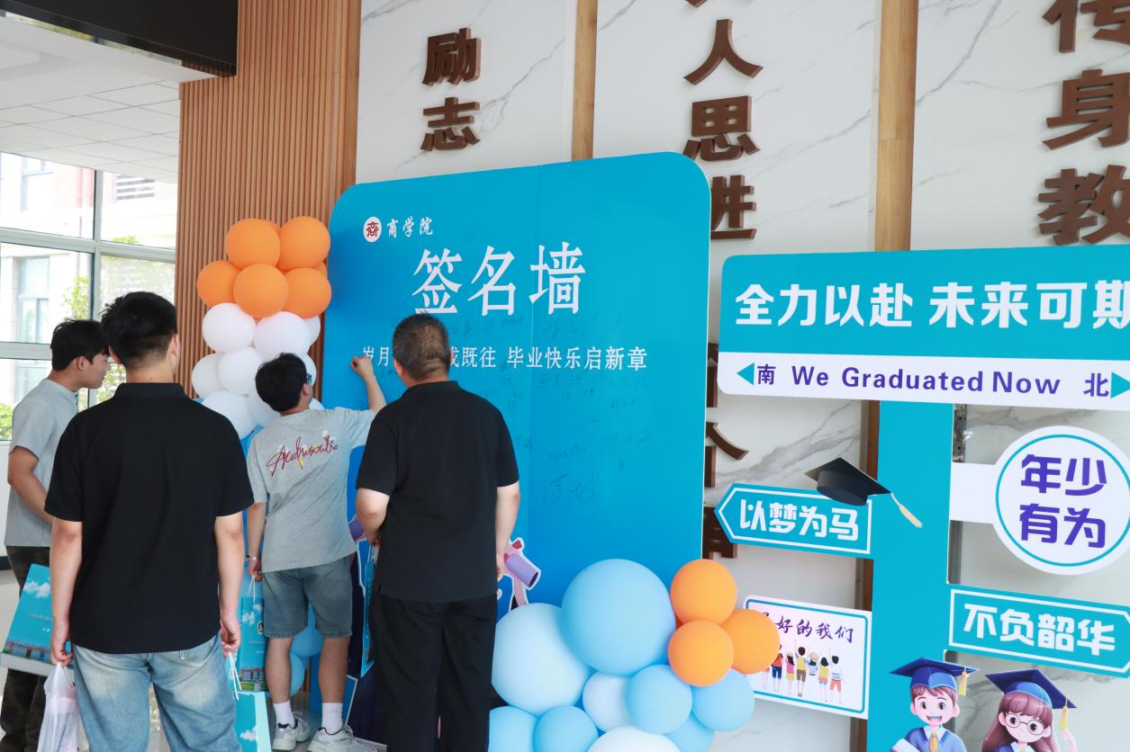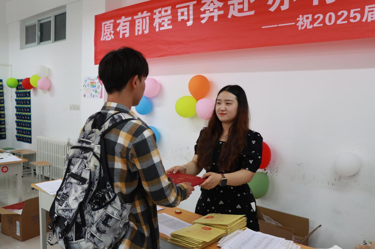 在毕业证领取现场,精心布置的签名墙上,毕业生们挥毫写下对未来的期许与对母校的祝福。一句句真挚的话语,一个个潇洒的签名,定格成独属于这个夏天的纪念。当他们从辅导员老师手中接过沉甸甸的毕业证书时,指尖触摸到的不仅是纸张的质感,更是知识与成长交织的硕果。老师们温暖的笑容、真挚的祝福,“毕业快乐,前程似锦”的话语,饱含着无尽的牵挂与期许,让这份毕业时刻更添一份温情。