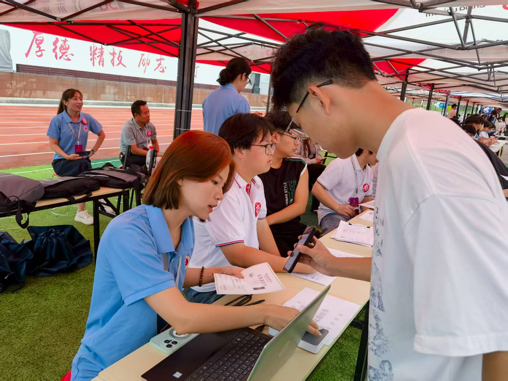 各班级辅导员早早守候在“辅导员接待点”,以微笑和耐心化解新生的忐忑。“同学你好,我是你的辅导员,未来三年我们并肩前行!”他们不仅高效解答注册、选课等疑问,还从学业规划到职业发展,为新生提供清晰有力的方向指引。