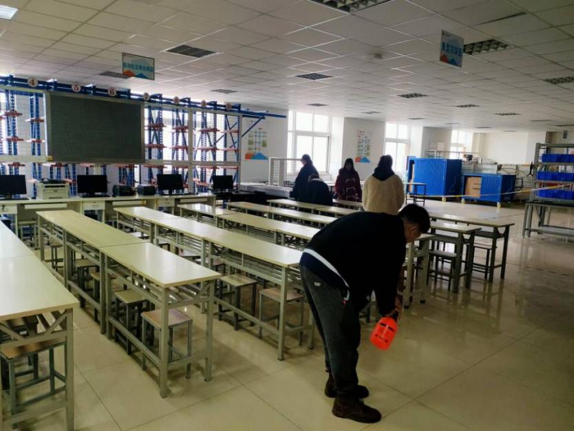在实训楼,积极分子志愿者们正干劲十足地进行清扫活动,做到不留下一丝灰尘,不放过一个角落。积极向上的工作态度更是完美体现了此次文明礼貌月的意义所在。
