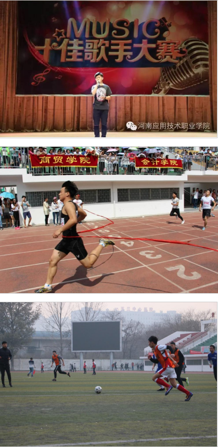 校园生活丰富多彩,有运动会、球类竞赛、文艺晚会、辩论赛等各类活动。