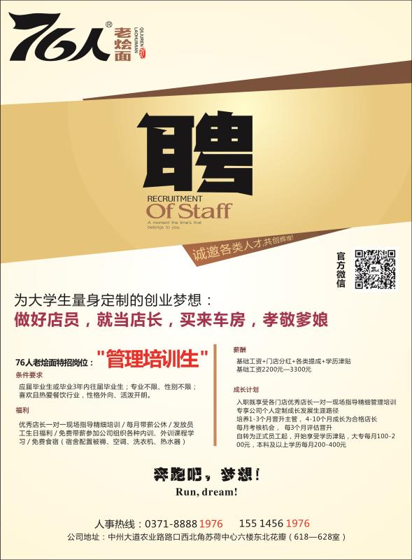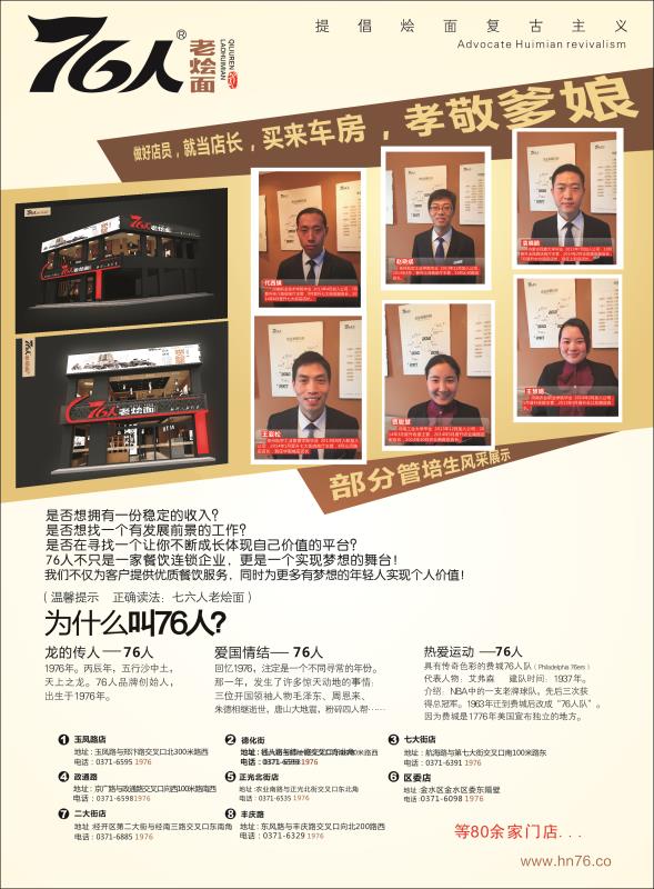 郑州76人餐饮服务有限公司招聘