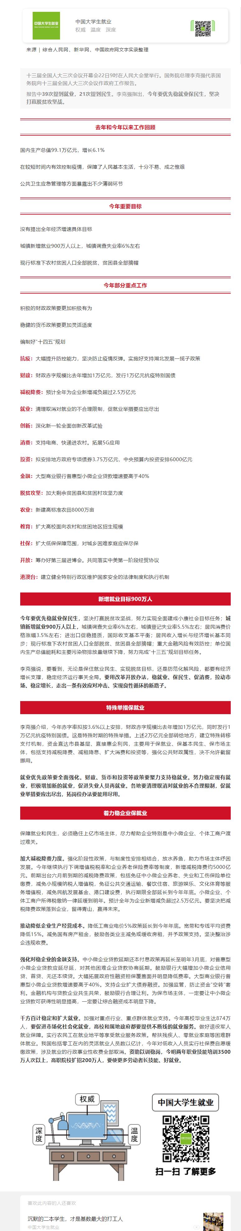 政府工作报告39次提到“就业”,今年要优先稳就业保民生